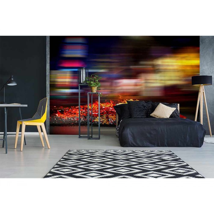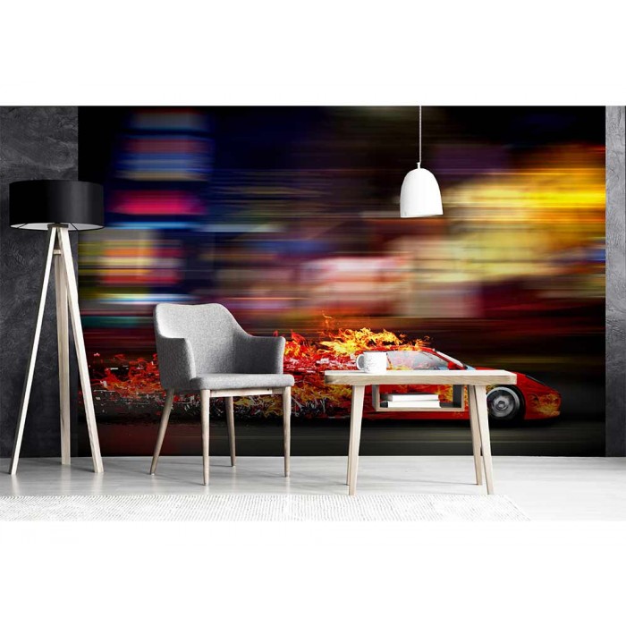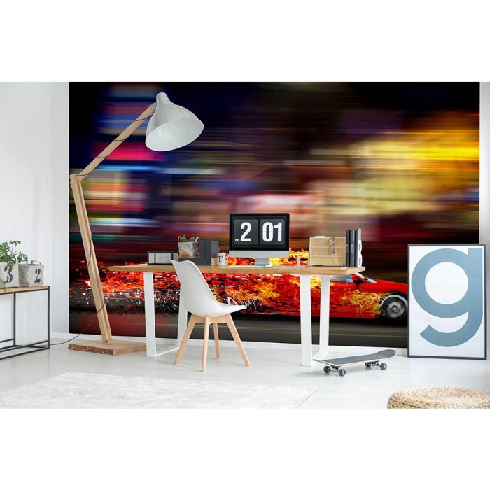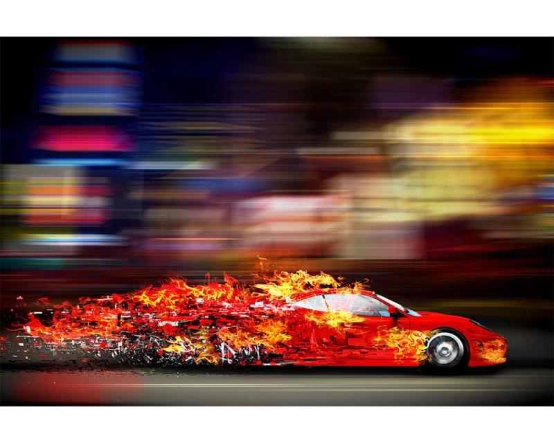 Vlies Fototapete - Rennauto in Flammen 375 x 250 cm