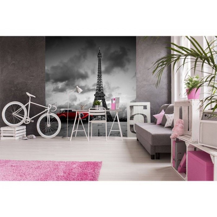 Vlies Fototapete - Retro Auto in Paris 225 x 250 cm