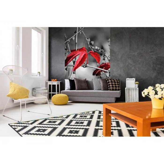 Vlies Fototapete - Rote Blätter im schwarzen Hintergund 150 x 250 cm