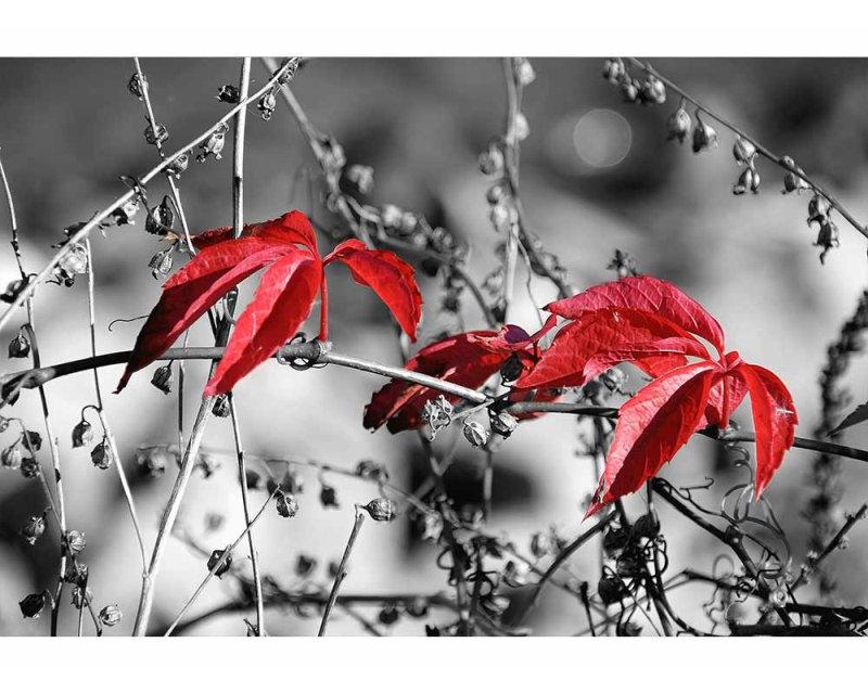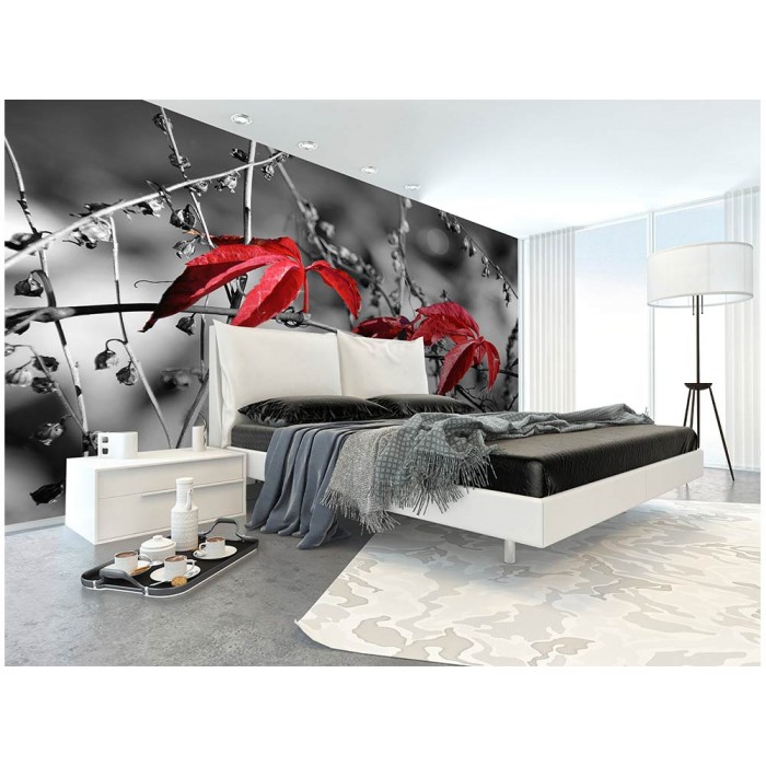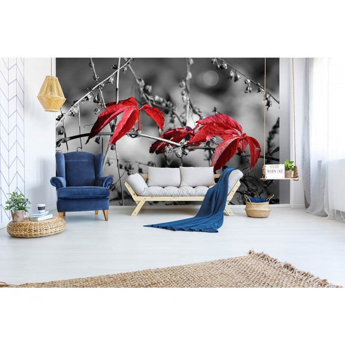 Vlies Fototapete - Rote Blätter im schwarzen Hintergund 375 x 250 cm