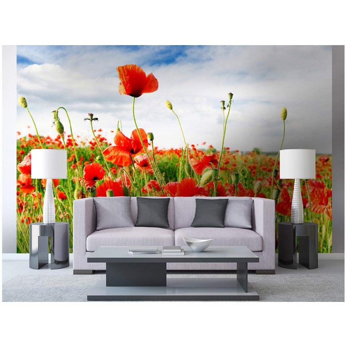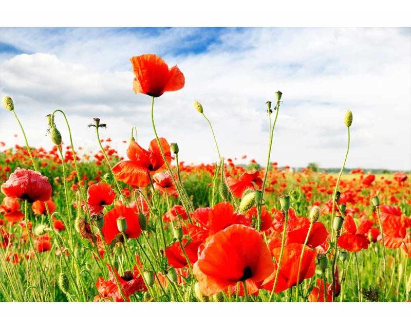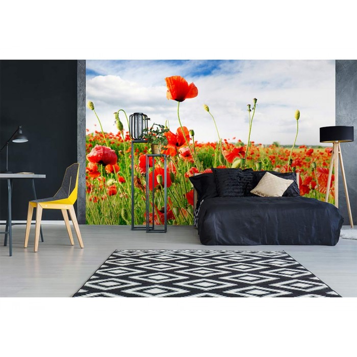 Vlies Fototapete - rote Mohnblumen 375 x 250 cm