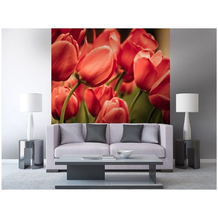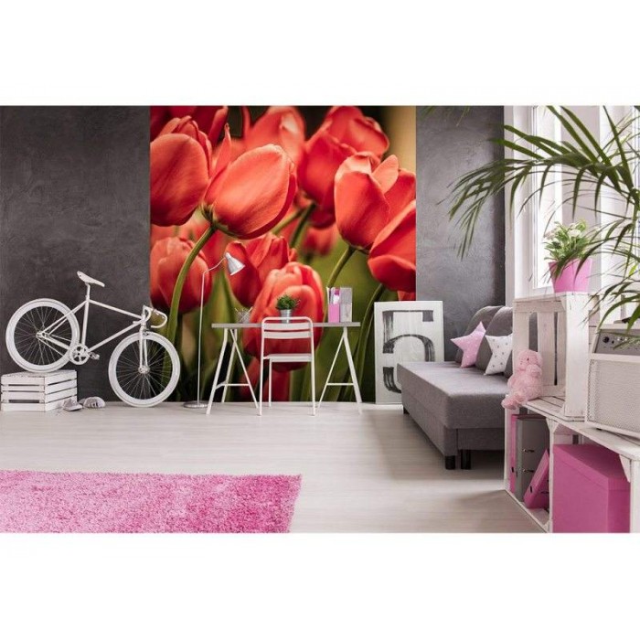 Vlies Fototapete - rote Tulpen 225 x 250 cm