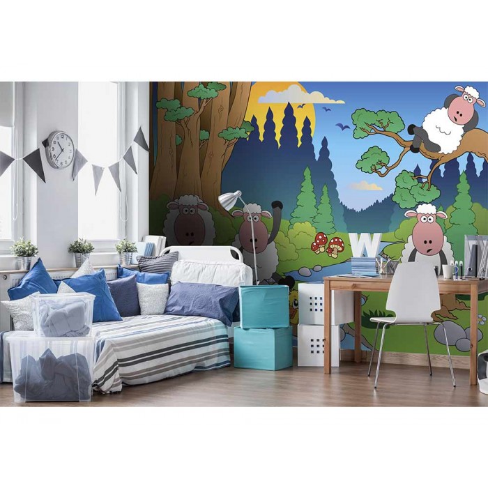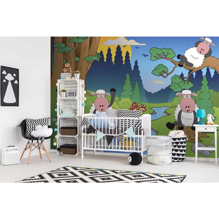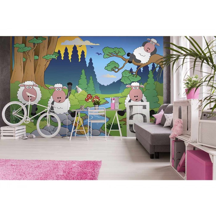 Vlies Fototapete - Schaf im Wald 375 x 250 cm