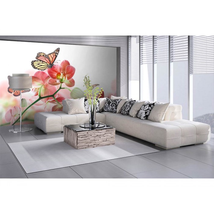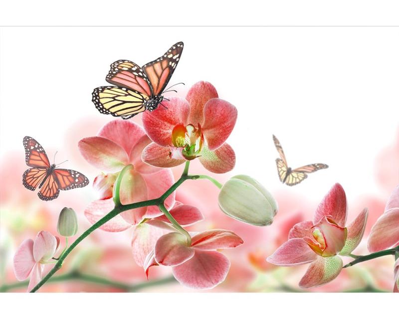 Vlies Fototapete - Schmetterling und Orchideen 375 x 250 cm