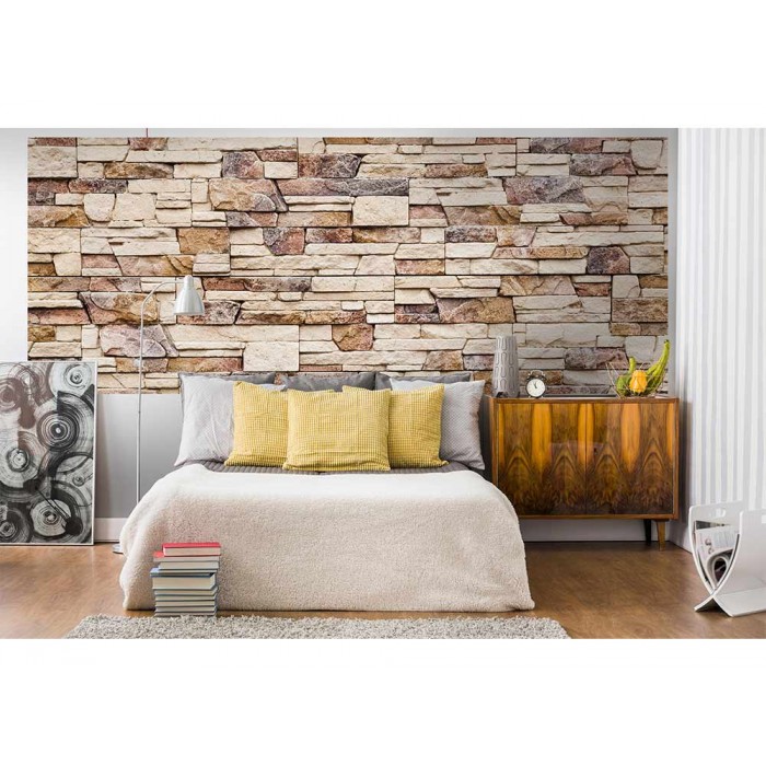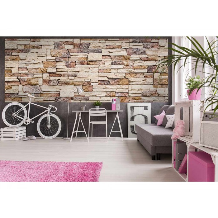 Vlies Fototapete - steiniger Wand 375 x 150 cm