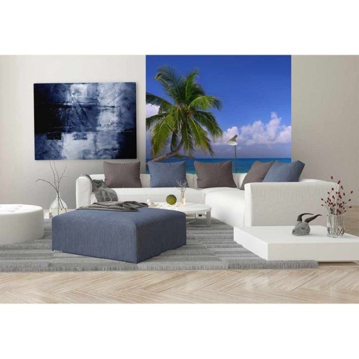Vlies Fototapete - Strand mit Palme 225 x 250 cm