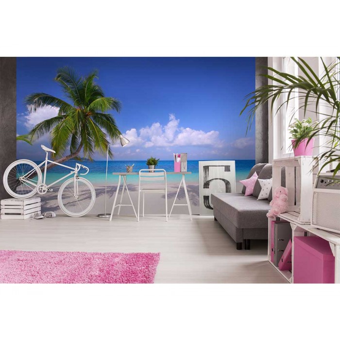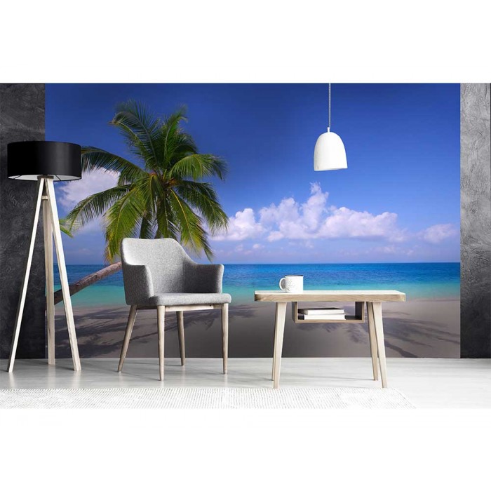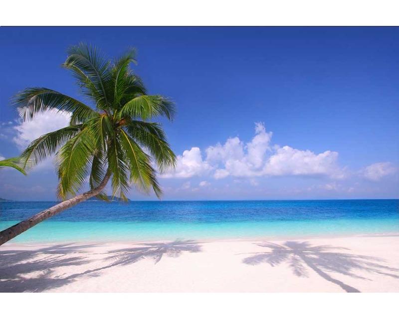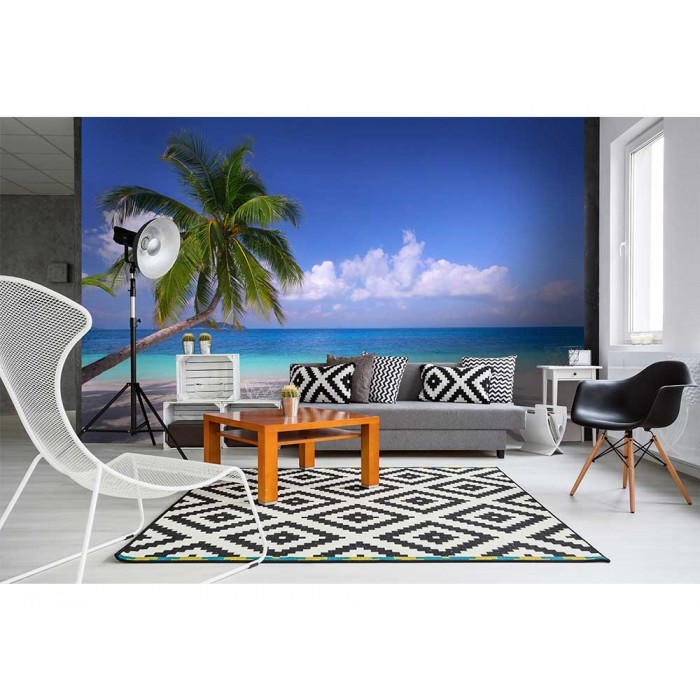 Vlies Fototapete - Strand mit Palme 375 x 250 cm