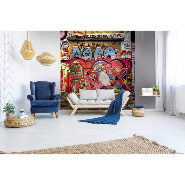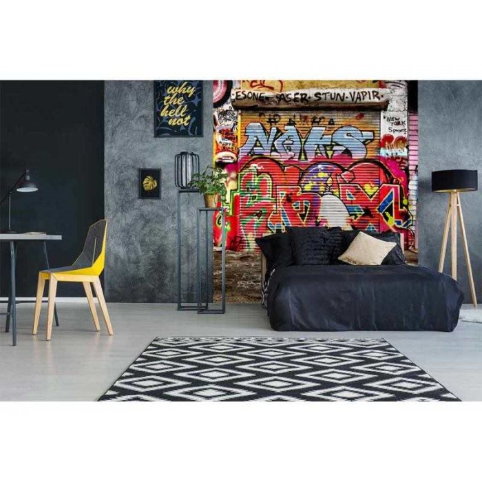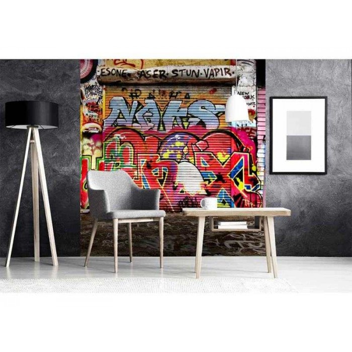 Vlies Fototapete - Straße mit Graffiti 225 x 250 cm