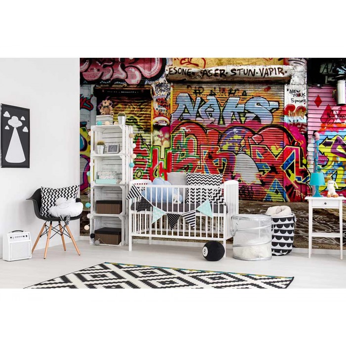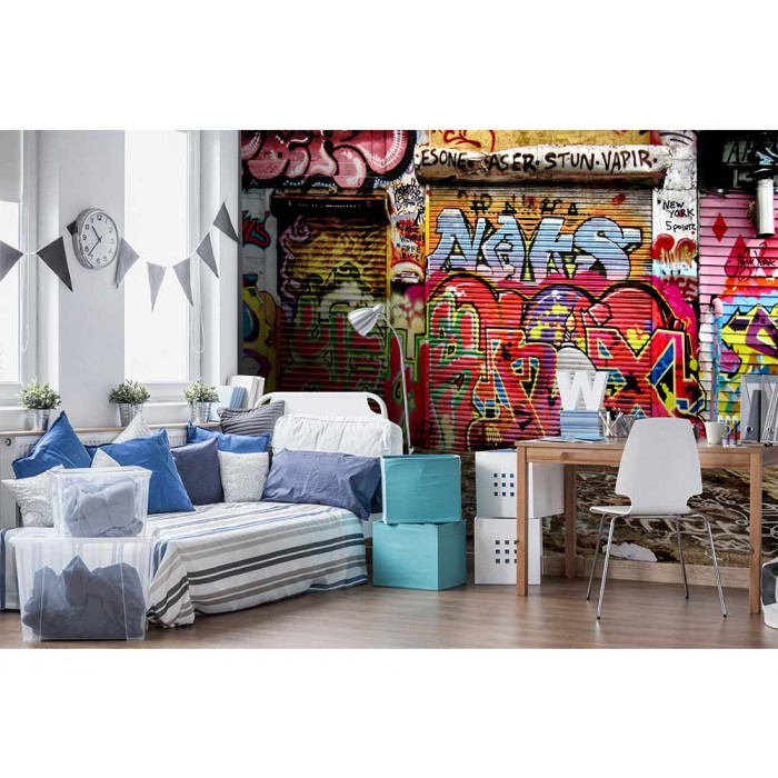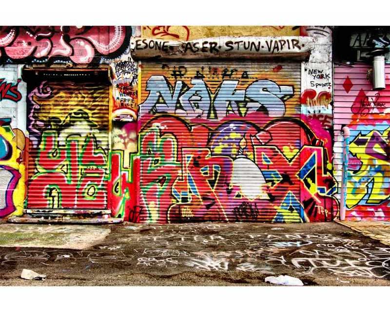 Vlies Fototapete - Straße mit Graffiti 375 x 250 cm
