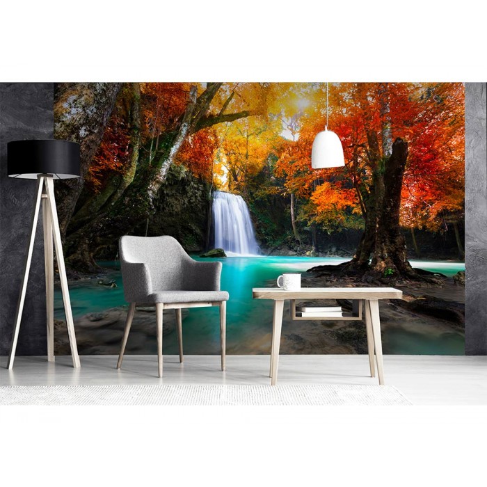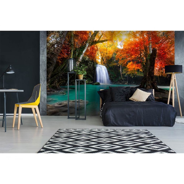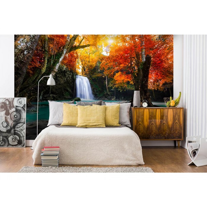 Vlies Fototapete - tiefer Waldwasserfall 375 x 250 cm