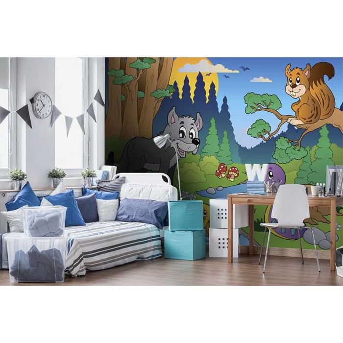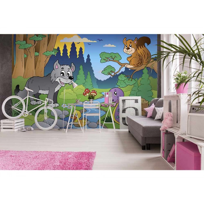 Vlies Fototapete - Tiere im Wald 375 x 250 cm