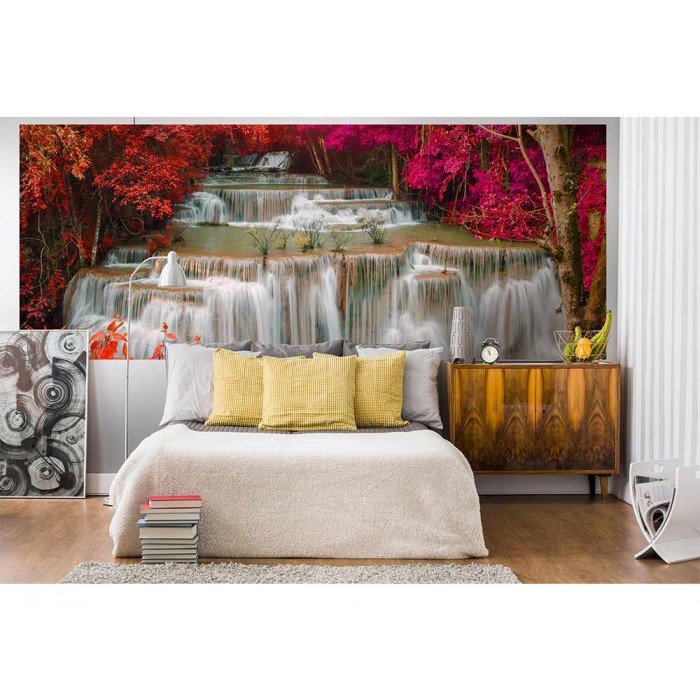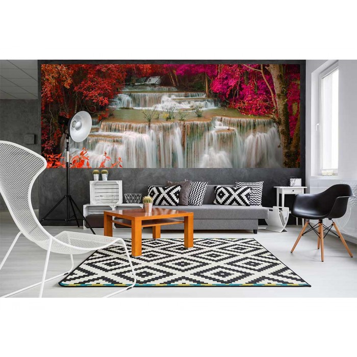 Vlies Fototapete - Wasserfall im Regenwald 375 x 150 cm