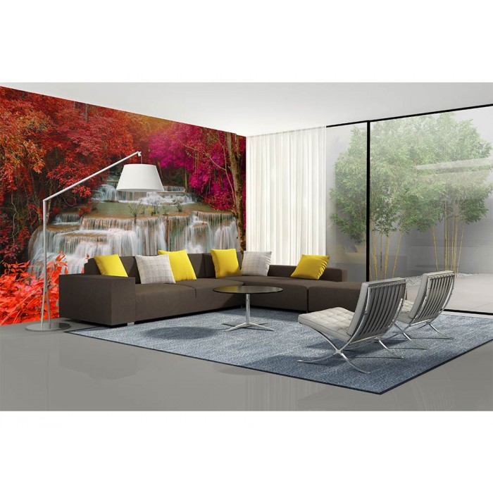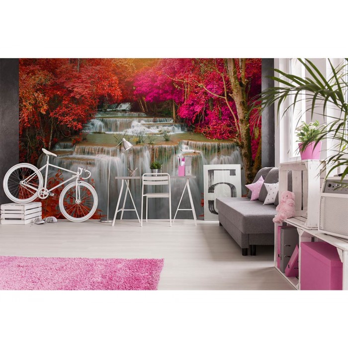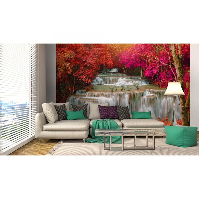 Vlies Fototapete - Wasserfall im Regenwald 375 x 250 cm