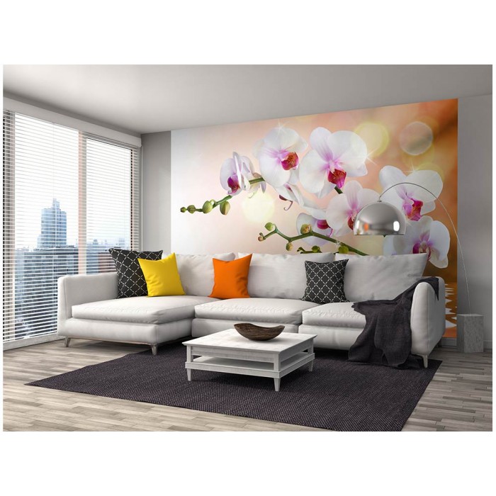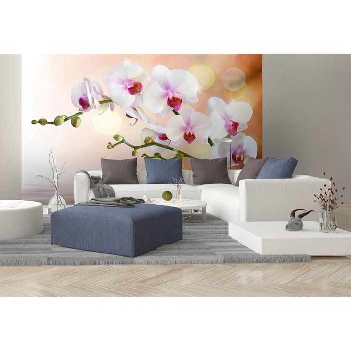 Vlies Fototapete - weiße Orchidee 375 x 250 cm